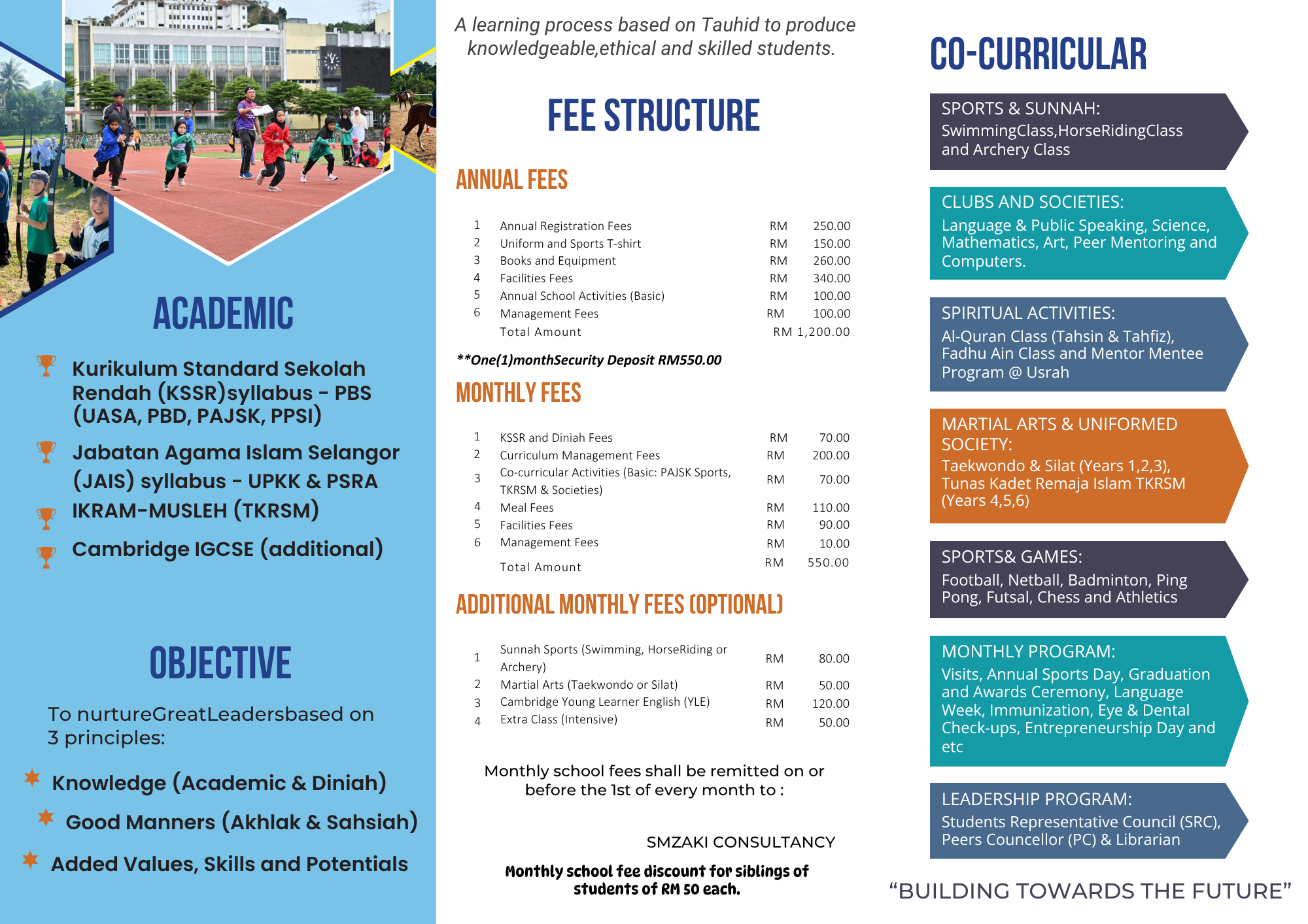 Memberi pendidikan fardhu ain dan fardhu kifayah secara seimbang selaras dengan sistem KSSR (Kurikulum Standard Sekolah Rendah), sistem kurikulum JAIS dan sistem kurikulum MUSLEH-IKRAM